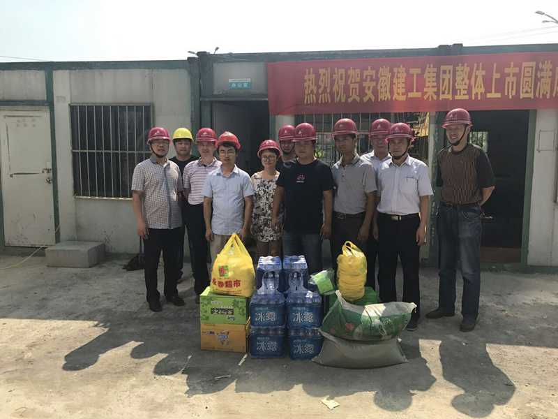 近期,合肥出現連續高溫天氣,“熱情”不減。為保障一線(xiàn)員工的身體健康,7月25日下午,公司黨委書(shū)記胡六中,公司紀委書(shū)記、工會(huì )主席李寬旭在第一分公司經(jīng)理康永軍、支部書(shū)記胡迎東等同志的陪同下來(lái)到合肥濱湖藍鼎項目部工地,親切慰問(wèn)奮戰在施工一線(xiàn)的項目部全體員工,并為他們送去了各類(lèi)防暑消暑用品。
