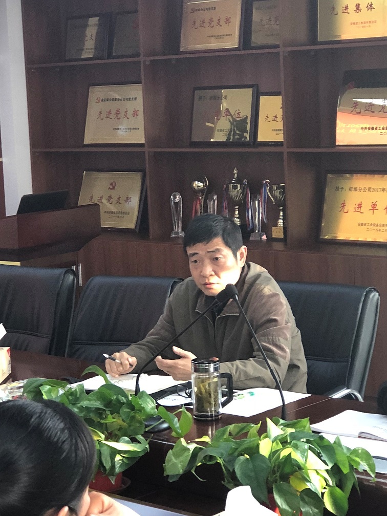 劉安俊副總經(jīng)理對會(huì )議充分肯定的同時(shí),提出了五點(diǎn)要求:一是要把“四個(gè)意識”、“四個(gè)自信”落到實(shí)處,把黨建工作與生產(chǎn)經(jīng)營(yíng)、企業(yè)發(fā)展相結合,杜絕“兩張皮”現象;二是2018年是蚌埠分公司經(jīng)營(yíng)的關(guān)鍵年,要抓目標、細落實(shí),全力以赴把經(jīng)營(yíng)工作做好,培養重要客戶(hù)源,形成差異化、專(zhuān)業(yè)化經(jīng)營(yíng),建立分公司經(jīng)營(yíng)大格局;三是從分公司發(fā)展的戰略高度,繼續改善人力資源狀況,進(jìn)一步提升班子成員、黨員干部的專(zhuān)業(yè)水平,發(fā)揮示范引領(lǐng)作用;四是加強學(xué)習,提升全員對安全的關(guān)注度,不斷提高項目質(zhì)量,嚴把項目成本;五是完善制度建設,強化制度執行力度,加強分公司文化建設。劉安俊強調,2018年開(kāi)啟發(fā)展新征程,希望分公司班子成員、全體黨員以飽滿(mǎn)的熱情投入到工作中,充分發(fā)揮模范帶頭作用,在全面完成各項指標的同時(shí)不斷提升蚌埠分公司整體實(shí)力。