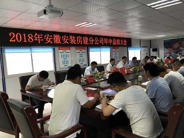 2018年7月9日,房建(裝飾)分公司四十余位員工齊聚阜陽(yáng)市潁東區中醫院建設PPP項目部會(huì )議室,召開(kāi)2018年中總結大會(huì )。本次會(huì )議以總結上半年工作、安排部署下半年工作為主要內容,在肯定成績(jì)的同時(shí)分析不足,展望未來(lái)。