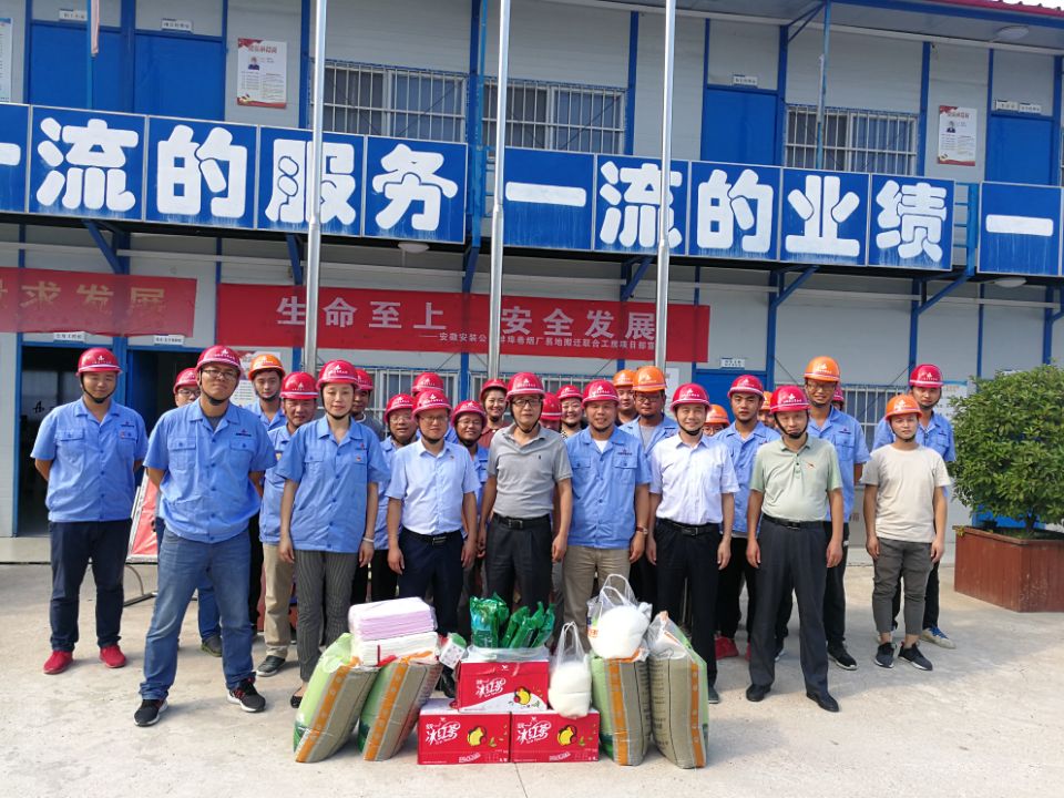 炎炎夏日、氣溫不斷攀升。為保障一線(xiàn)員工身體健康,7月31日下午,公司副總經(jīng)理劉安俊,公司紀委書(shū)記、工會(huì )主席李寬旭來(lái)到安徽中煙蚌埠卷煙廠(chǎng)項目部施工現場(chǎng),看望慰問(wèn)奮戰在一線(xiàn)的員工,為他們送去了綠豆、白糖、風(fēng)油精、十滴水等防暑降溫用品,帶來(lái)了濃濃的關(guān)愛(ài)和絲絲清涼。