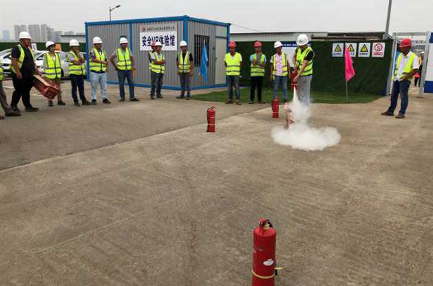 演練正式開(kāi)始前,項目部全體人員在“安全消防演練”的紅色橫幅上鄭重的簽下了自己的名字。演練按預定方案進(jìn)行,項目部安全員闡述了本次演練的目的和意義,介紹基礎的火災消防知識,點(diǎn)明掌握火災逃生的基本方法。項目管理公司安全工程師針對項目部可能存在的火災隱患做了重點(diǎn)闡述,并指出項目部可能發(fā)生火災的地點(diǎn)主要為生活區,重點(diǎn)強調各班組長(cháng)在生活區要做好宣傳帶頭作用,將火災隱患扼殺在萌芽之中。項目技術(shù)負責人李冬現場(chǎng)講解并示范了常見(jiàn)的手提式干粉滅火器的使用方法,而后參演人員親自體驗了如何正確的使用滅火器。消防演練緊張有序,安全保證工作到位,演練達到預期效果。