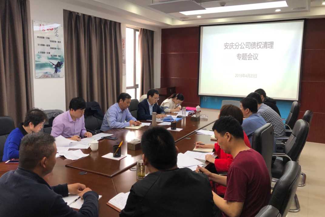 2019年4月23日,公司副總經(jīng)理高飛在財務(wù)部經(jīng)理許素寒、紀檢監察室主任王偉、工程管理部副經(jīng)理龍海建等人的陪同下蒞臨安慶分公司,召開(kāi)債權清理專(zhuān)題會(huì )議。