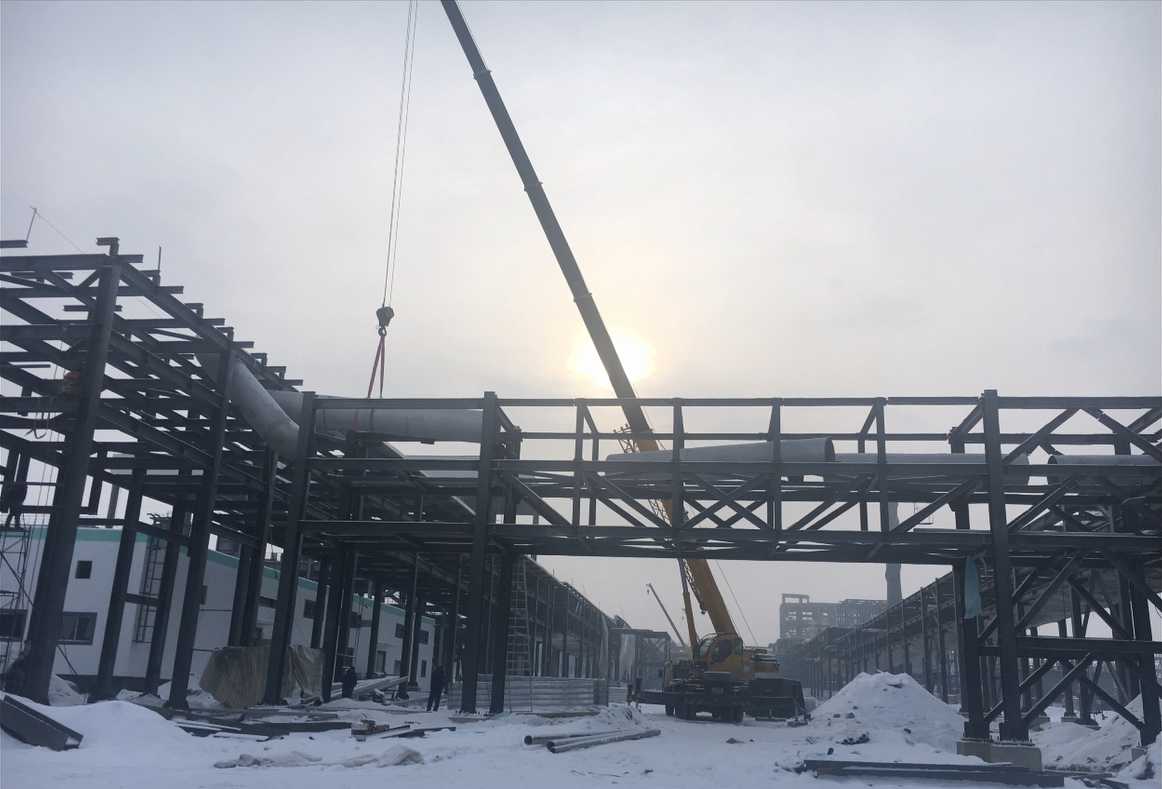 冬日施工中的新疆烏蘇管廊項目現場(chǎng)