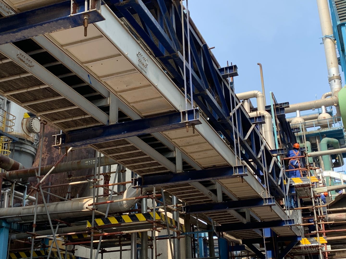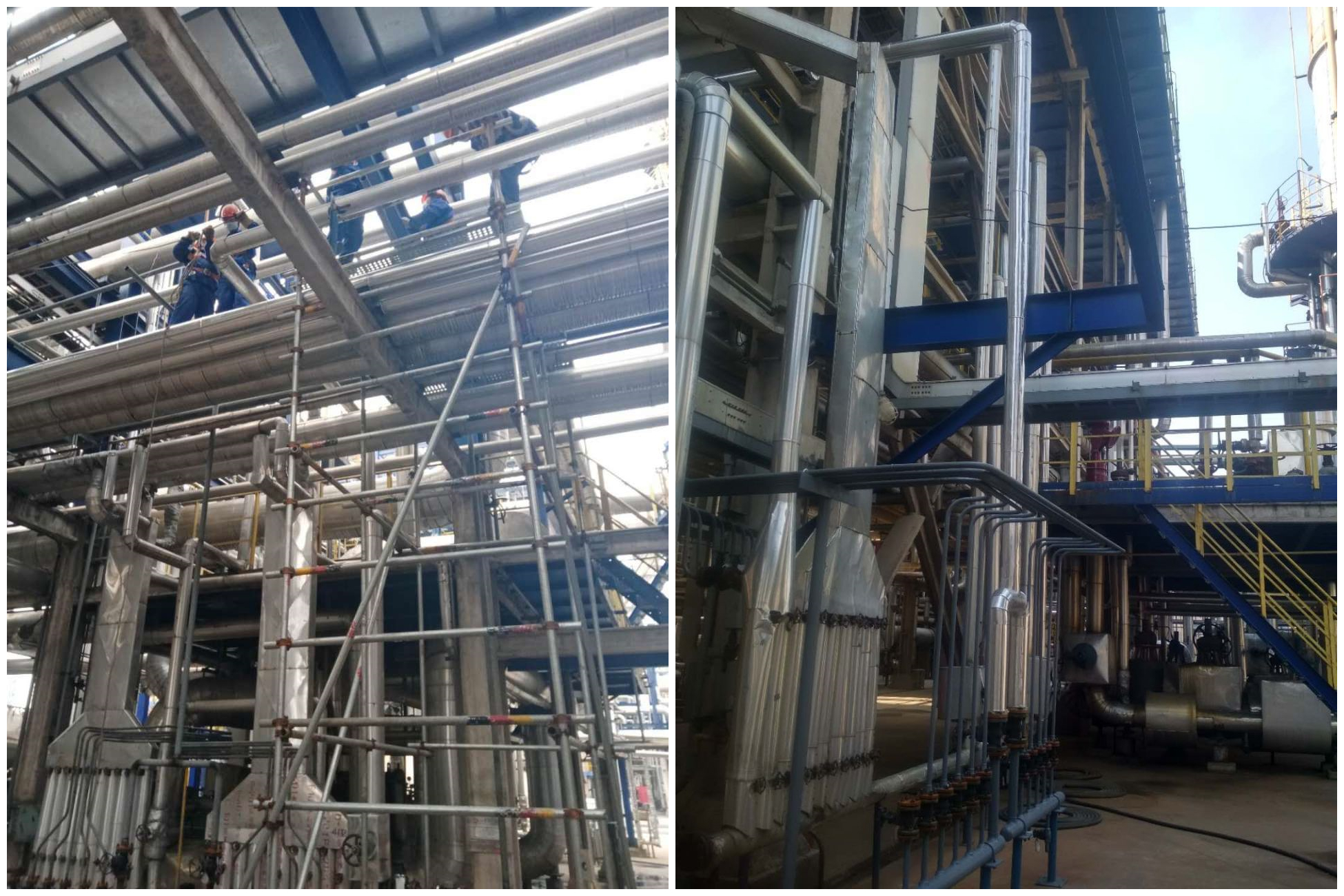 眾人拾柴火焰高,團結起來(lái)勇向前。施工工人們在各個(gè)項目現場(chǎng)忙著(zhù)搭建腳手架、吊裝設備、焊接管道、敷設電纜、調試儀表、開(kāi)挖基坑、排水及設備基礎的施工等等?,F場(chǎng)管理人員也是有條不紊的按工序要求組織工人們交錯施工,五個(gè)項目作業(yè)面全力展開(kāi)……緊張繁忙的施工氣息撲面而來(lái)。