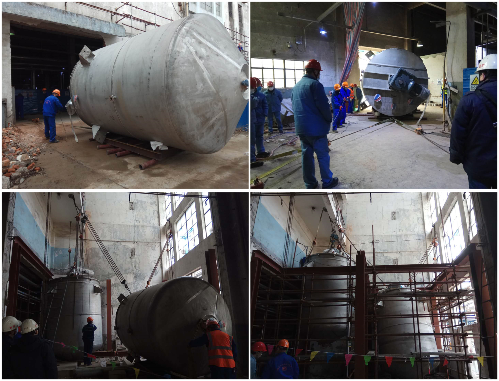 “腈綸阻燃纖維生產(chǎn)技術(shù)改造項目”的建成能夠使纖維產(chǎn)品起到防火阻燃的作用,創(chuàng )造更大經(jīng)濟效益,該項目屬于安慶石化重點(diǎn)項目。項目在施工過(guò)程中,由于安裝場(chǎng)地位于室內,運輸和起重機械無(wú)法使用,導致2臺12噸、2臺8噸的配料罐無(wú)法簡(jiǎn)便運輸和吊裝進(jìn)入室內安裝,給施工人員造成極大的困擾。但方法總比困難多,經(jīng)項目部拿出具體施工方案與業(yè)主、監理研究決定,利用最原始的滾杠搬運辦法,再以原有房梁為吊點(diǎn),采用2個(gè)20噸手動(dòng)葫蘆吊裝、拉運的方式順利將設備安裝就位。同時(shí)項目部合理安排人員加班加點(diǎn),為后期機泵安裝及工藝管道、鋼結構、電氣儀表、防腐保溫等配套設施施工爭分奪秒,力爭3月31日完成共混單元所有施工,為業(yè)主平穩生產(chǎn)產(chǎn)品,創(chuàng )造效益打下堅實(shí)基礎,也為安徽安裝的發(fā)展打下良好的口碑。