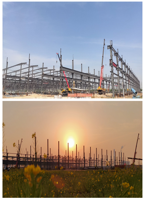 為進(jìn)一步調動(dòng)參建人員的積極性和創(chuàng )造性,分公司組織開(kāi)展項目“大干90天”勞動(dòng)競賽,有效形成了一片“比、學(xué)、趕、幫、超”的火熱生產(chǎn)局面。盡管3月底持續陰雨天氣,但絲毫沒(méi)有影響到月施工進(jìn)度,2#車(chē)間整體框架已全部按時(shí)間節點(diǎn)圓滿(mǎn)完成。目前,1#車(chē)間安裝正在高速推進(jìn)。