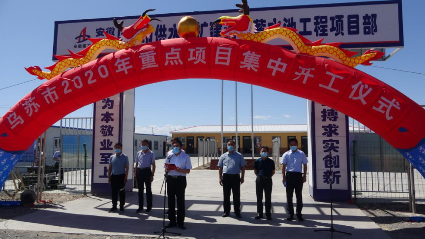 烏蘇市2020年重點(diǎn)項目集中開(kāi)工儀式在安徽安裝烏蘇供水改擴建調節蓄水池項目現場(chǎng)召開(kāi)