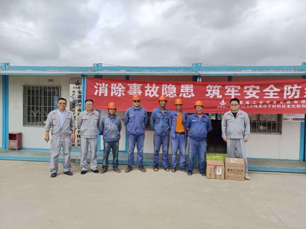 6月13日,年產(chǎn)12.5萬(wàn)噸高分子材料抗老化助劑項目部開(kāi)展了“送清涼”活動(dòng),為項目一線(xiàn)施工人員送上了防暑降溫物品,送去了夏日清涼,做好高溫天氣下一線(xiàn)施工人員的防暑降溫工作。