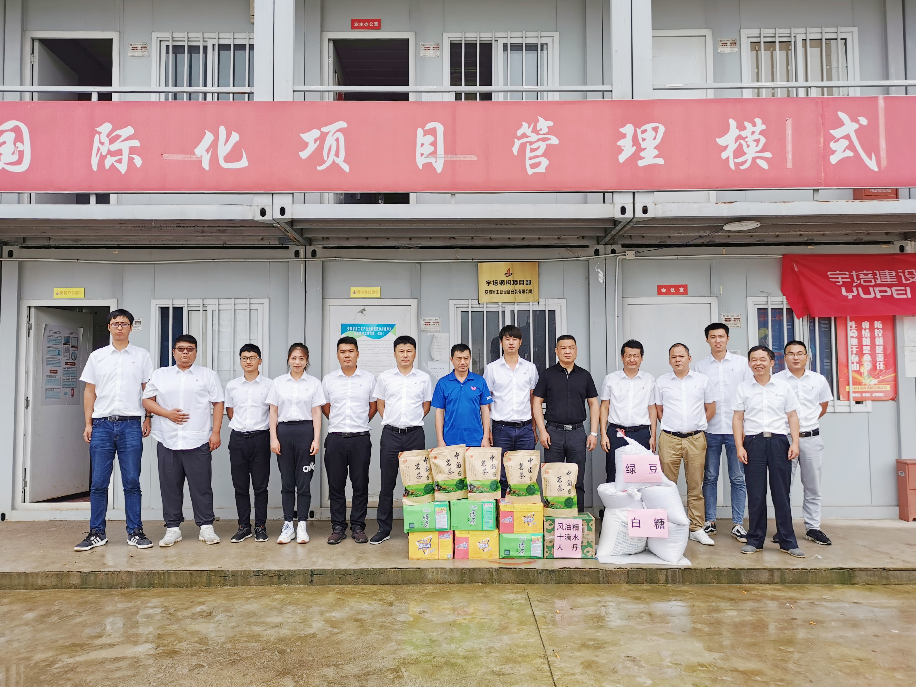 7月17日上午,公司領(lǐng)導走訪(fǎng)慰問(wèn)了合肥分公司蕪湖宇培鋼結構項目部,為高溫天氣堅守在工作一線(xiàn)的項目部員工帶來(lái)了夏日防暑的常用藥品及飲料、綠豆、白糖、茶葉等。要求項目部堅持以人為本,一定要做好常態(tài)化疫情防控、防暑降溫、雨期安全工作,尤其是高溫、大風(fēng)等極端天氣更要精心部署,合理安排作業(yè)內容,避開(kāi)高溫時(shí)段施工,每日班前做好員工精神狀態(tài)確認,安全提醒到位,確保高溫季節一線(xiàn)職工安全度暑。