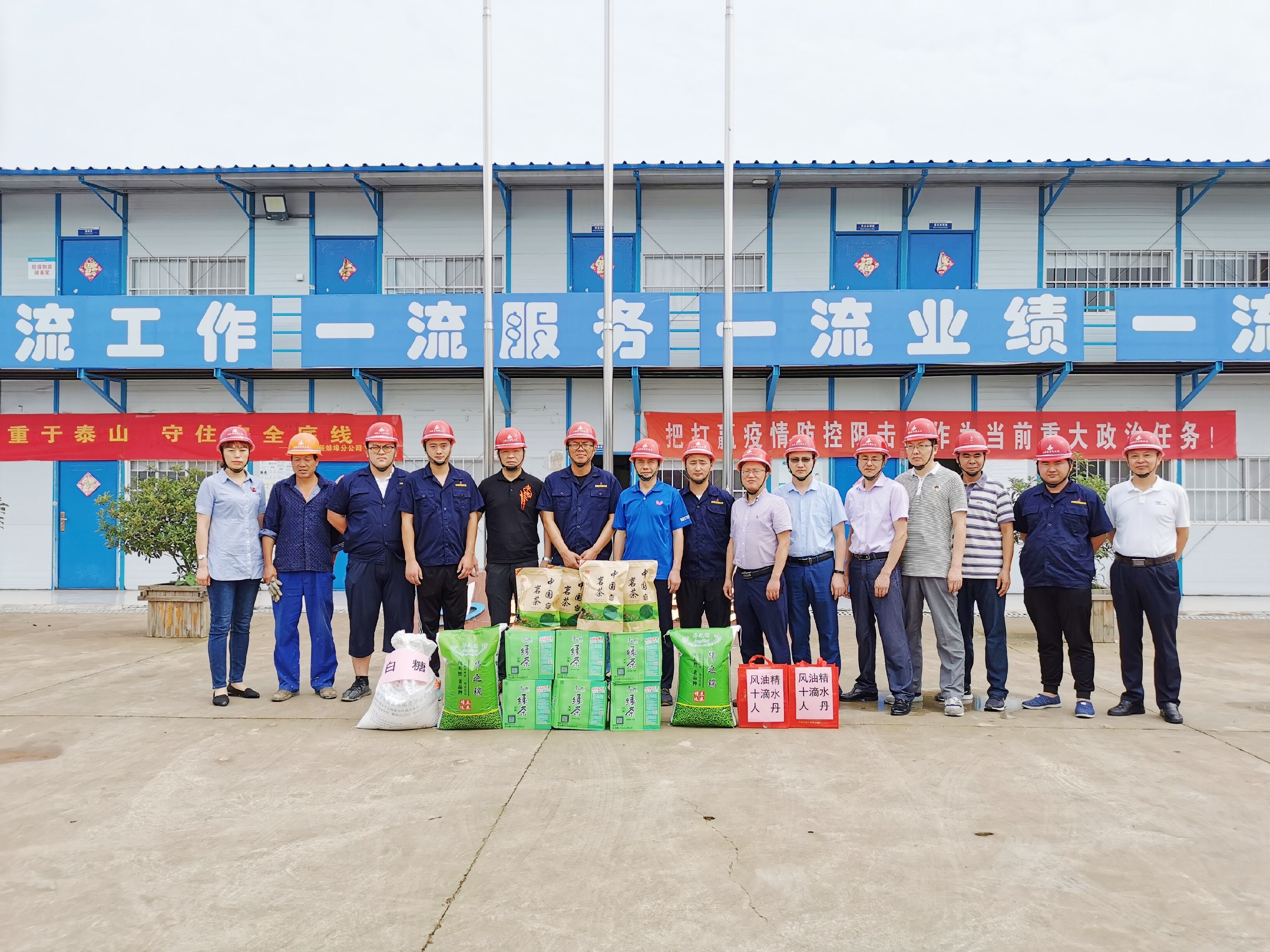 7月15日上午,公司領(lǐng)導深入蚌埠分公司淮河水科院項目部施工現場(chǎng),為一線(xiàn)員工送去綠豆、白糖、茶葉、藥品等夏季防暑降溫物品。查看了施工現場(chǎng)管理、辦公生活環(huán)境,悉心詢(xún)問(wèn)大家的工作生活情況,對項目部職工不懼高溫、堅守一線(xiàn)的奉獻精神予以充分肯定。要求項目部要切實(shí)抓好收尾工程的安全、質(zhì)量、結算工作,尤其要抓好項目的創(chuàng )優(yōu)創(chuàng )杯工作。