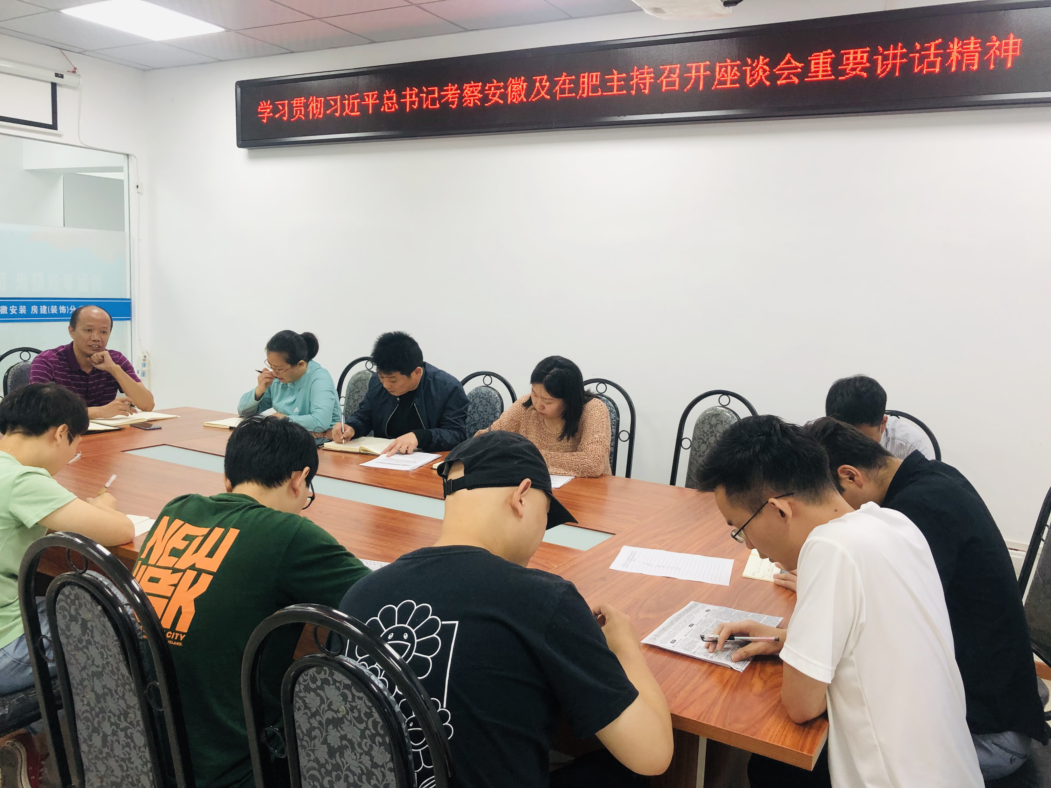 9月27日,房建(裝飾)分公司組織集中學(xué)習宣傳貫徹習近平總書(shū)記考察安徽和在合肥主持召開(kāi)扎實(shí)推進(jìn)長(cháng)三角一體化發(fā)展座談會(huì )重要講話(huà)精神。黨支部副書(shū)記張曼主持會(huì )議,分公司在肥職工參加集中學(xué)習。