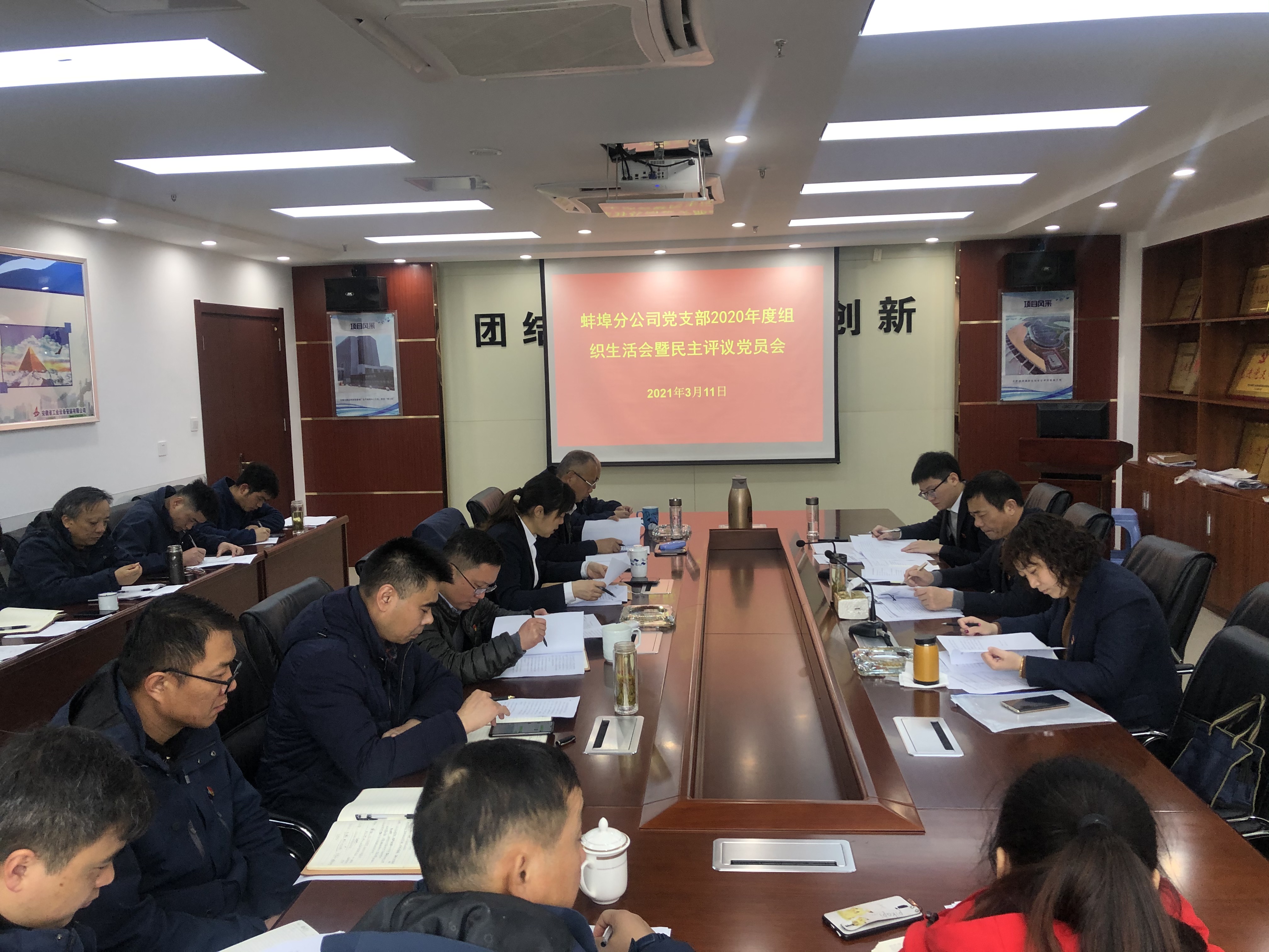 根據公司黨委工作部署,3月11日上午,蚌埠分公司黨支部召開(kāi)2020年度專(zhuān)題組織生活會(huì )暨民主評議黨員大會(huì )。公司紀委書(shū)記、工會(huì )主席李寬旭,人力資源部經(jīng)理、機關(guān)第三黨支部書(shū)記王敏,公司黨委辦公室主管楊駿輝同志到會(huì )指導。會(huì )議由黨支部書(shū)記程茂麗主持,分公司全體黨員參會(huì )。