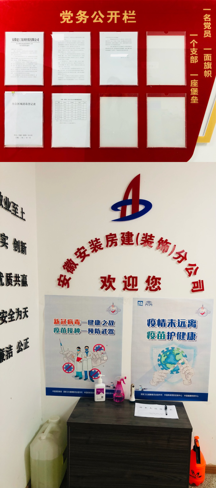 近期,安徽安裝房建(裝飾)分公司黨支部迅速落實(shí)集團公司黨委和公司黨委疫情防控有關(guān)工作部署,針對分司機關(guān)及所屬各項目疫情防控工作作出具體要求:一是要分公司機關(guān)、各項目部針對來(lái)訪(fǎng)人員及時(shí)做好測溫、登記工作;二是要加強辦公區、項目食堂等人員易集中區域的日常衛生消殺工作;三是要積極做好疫苗接種宣傳工作,合理安排組織職工就近接種疫苗;四是要合理安排好項目食堂就餐時(shí)間,分批次、分時(shí)間段組織項目現場(chǎng)人員就餐,避免人員過(guò)度集中;五是要統籌做好疫情期間日常防護和生產(chǎn)經(jīng)營(yíng)工作。