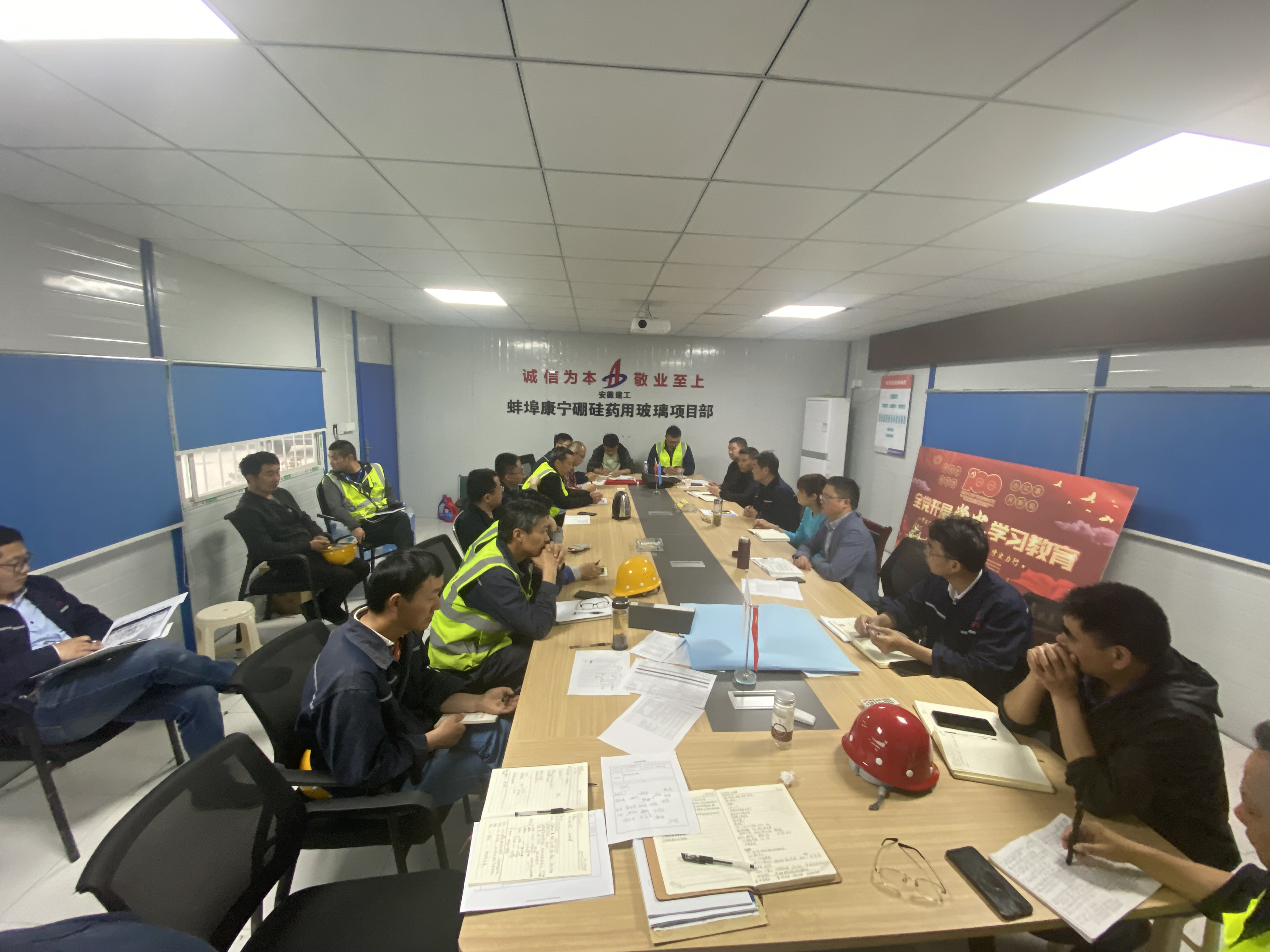 5月18日,雖然已是晚間八點(diǎn)多,但是位于蚌埠市中環(huán)線(xiàn)南、中糧大道以西的康寧藥用玻璃管項目現場(chǎng)到處是一片繁忙的景象。項目部會(huì )議室內燈火通明,全體參戰人員正在召開(kāi)項目協(xié)調推進(jìn)會(huì ),而在不遠處的施工現場(chǎng),機器設備聲轟鳴,百十名施工人員在各自的崗位上緊張而有序地忙碌著(zhù)。