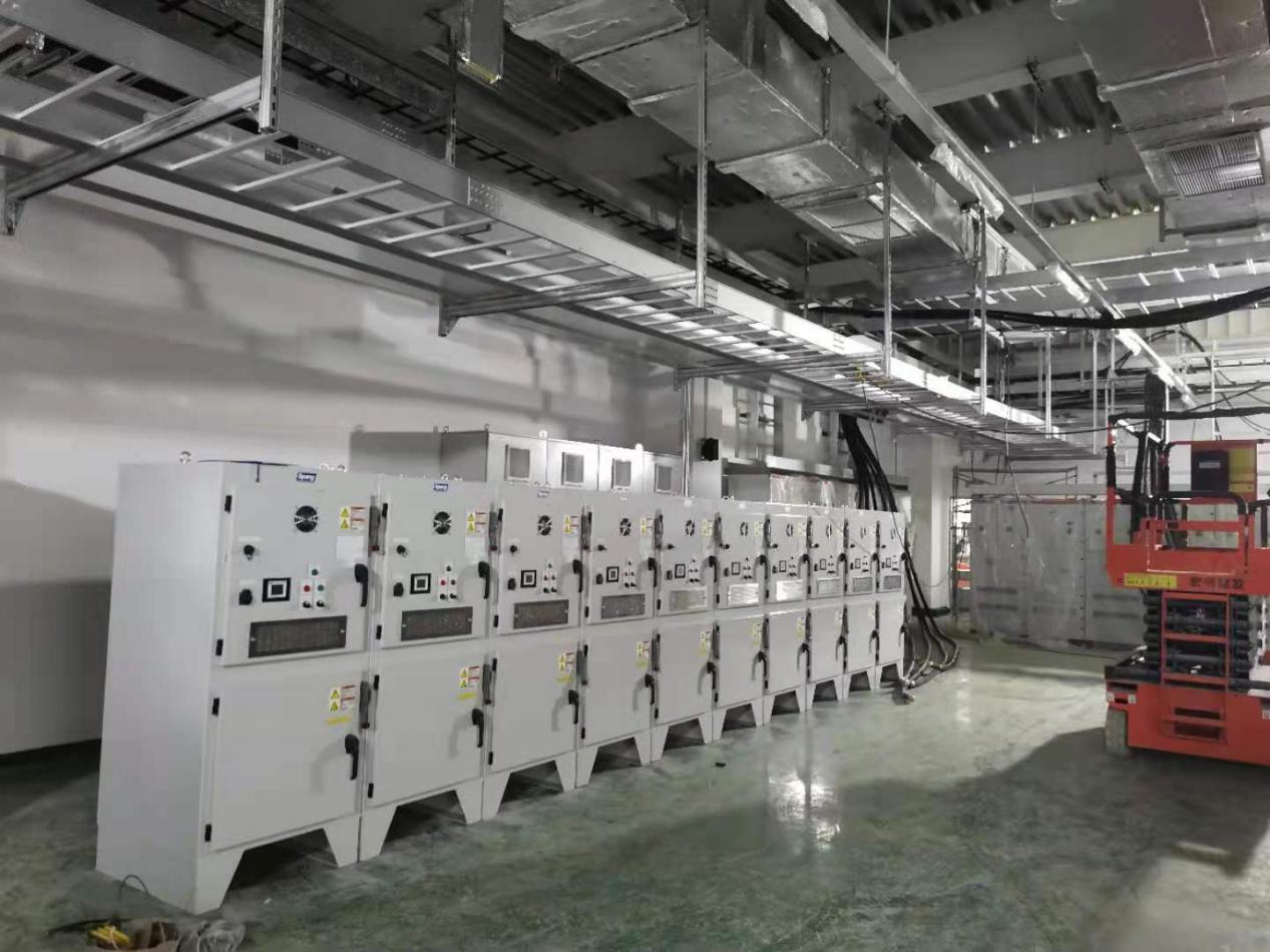 圖為配電房?jì)鹊呐潆姽褚讶慷ㄎ淮泳€(xiàn)安裝