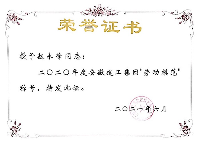 2019年3月,根據安徽安裝公司拓展市場(chǎng)、加快發(fā)展的工作要求,趙永峰勇挑重擔,擔負起了合肥分公司“開(kāi)拓市場(chǎng)一片天”的重任,團結帶領(lǐng)分公司班子成員和全體員工立足新起點(diǎn)、整裝再出發(fā),努力為實(shí)現分公司新一輪大發(fā)展而不懈奮斗,取得的可喜成績(jì)得到了領(lǐng)導和員工們的一致認可和稱(chēng)贊。受到安徽建工集團及安徽省工業(yè)設備安裝有限公司的表彰,在2021年7月1日-2日召開(kāi)的安徽建工集團控股有限公司二屆一次職工代表大會(huì )暨“七一”表彰會(huì )上,趙永峰同志作為集團勞動(dòng)模范代表光榮的上臺授獎。