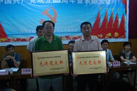 為紀念中國共產(chǎn)黨成立89周年,公司黨委于6月29日下午召開(kāi)了“紀念中國共產(chǎn)黨成立89周年暨‘創(chuàng )先爭優(yōu)’表彰大會(huì )”。公司在崗黨員、非黨員中層干部、入黨積極分子以及受表彰的先進(jìn)集體、先進(jìn)個(gè)人參加了大會(huì )。大會(huì )由總經(jīng)理王軍邦同志主持。
