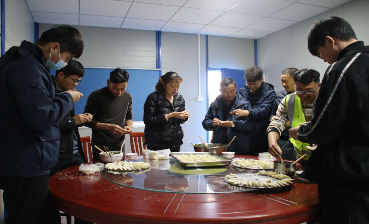 在整個(gè)包餃子過(guò)程中,大家熱情高漲,積極參與,分享經(jīng)驗,不一會(huì )兒,一排排餃子就成型了,有的用料十足,包出的餃子個(gè)大肚圓;有的用料較少,包出的餃子小巧美觀(guān)。元寶餃子、月牙餃子、麥穗餃子……項目部到處洋溢歡聲笑語(yǔ),彌漫著(zhù)“家”的味道、“家”的溫馨。