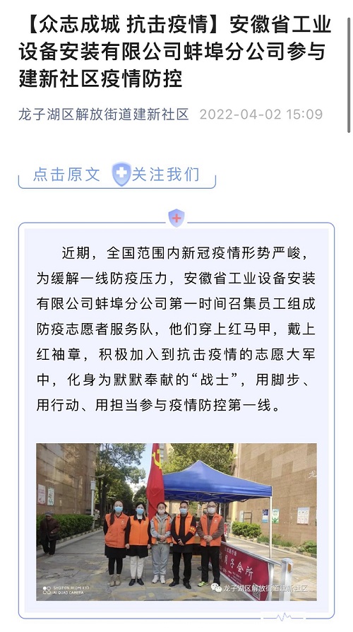 “疫”不容辭、志愿有我 ——蚌埠分公司黨支部開(kāi)展疫情防控志愿服務(wù)活動(dòng)