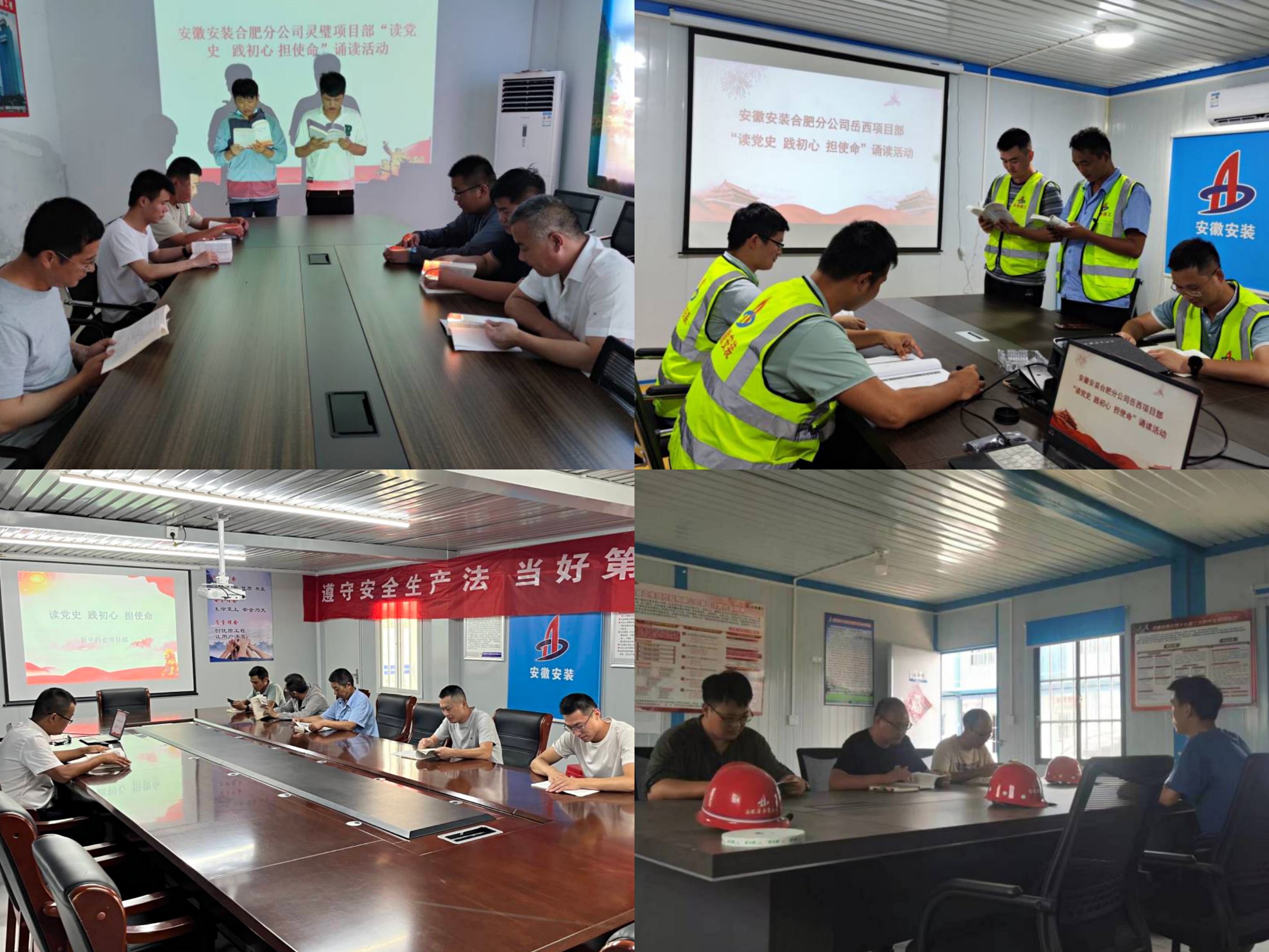為慶祝中國共產(chǎn)黨成立101周年,進(jìn)一步弘揚黨的光榮傳統,重溫黨的光輝歷程,傳遞職工愛(ài)黨愛(ài)國情懷,“七一”前夕,合肥分公司黨支部組織開(kāi)展了“讀黨史 踐初心 擔使命”誦讀活動(dòng)。圍繞黨史相關(guān)文章、紅色詩(shī)詞、紅色家書(shū)、紅色故事等內容,分公司機關(guān)和項目部廣大黨員職工積極參與。