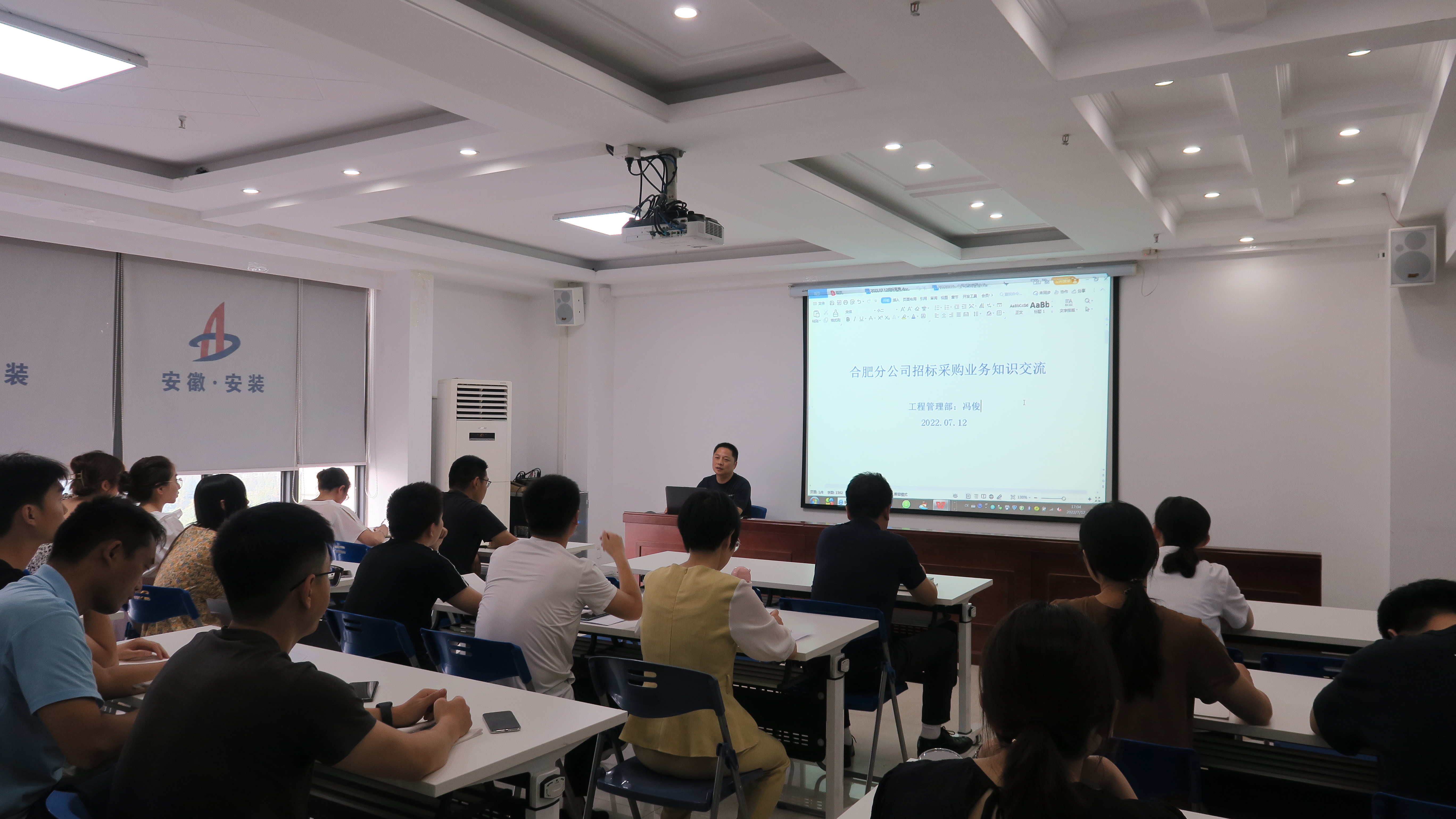 根據合肥分公司“項目管理年”活動(dòng)學(xué)習培訓計劃安排,7月12日下午,分公司組織開(kāi)展了第四期“項目管理年”活動(dòng)制度學(xué)習會(huì ),由分公司工程管理部馮俊宣貫集團及公司最新招標采購業(yè)務(wù)相關(guān)知識。分公司領(lǐng)導班子成員及機關(guān)員工參會(huì ),外地項目以視頻形式參會(huì )。
