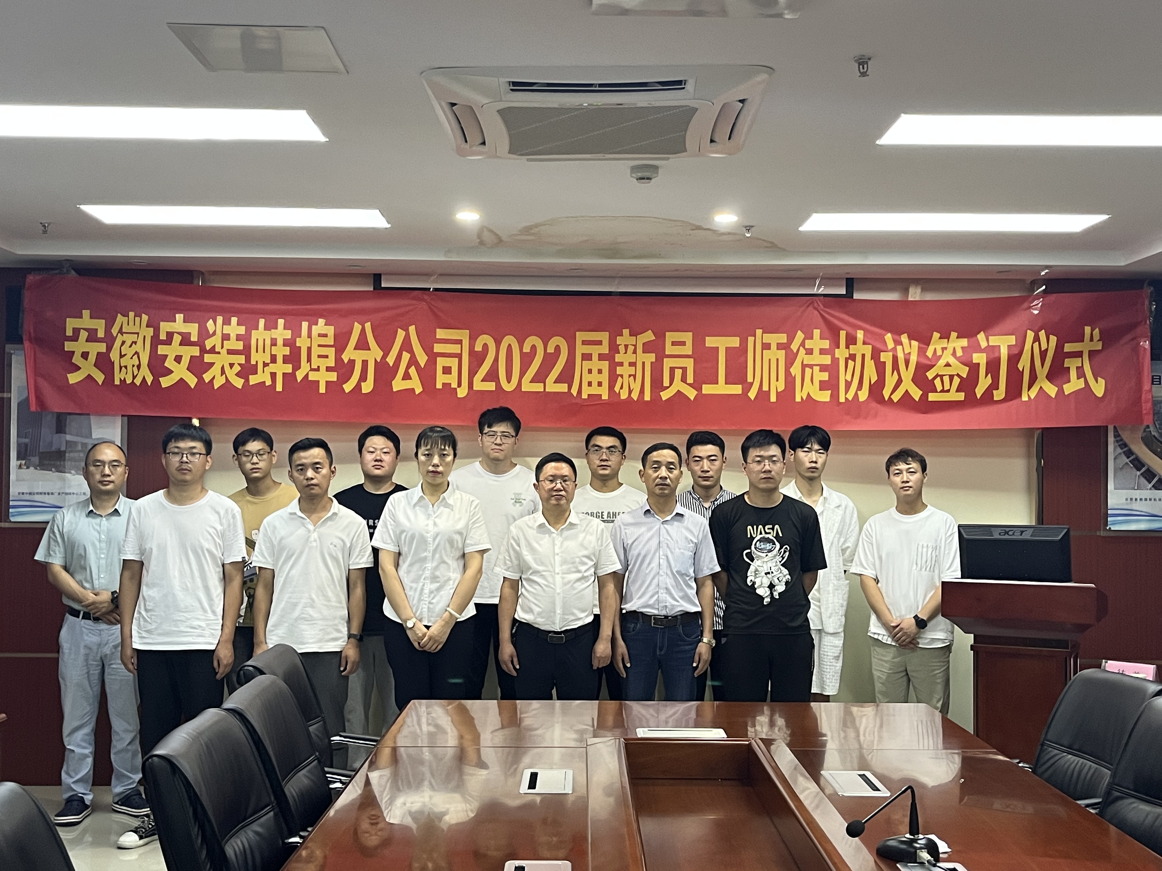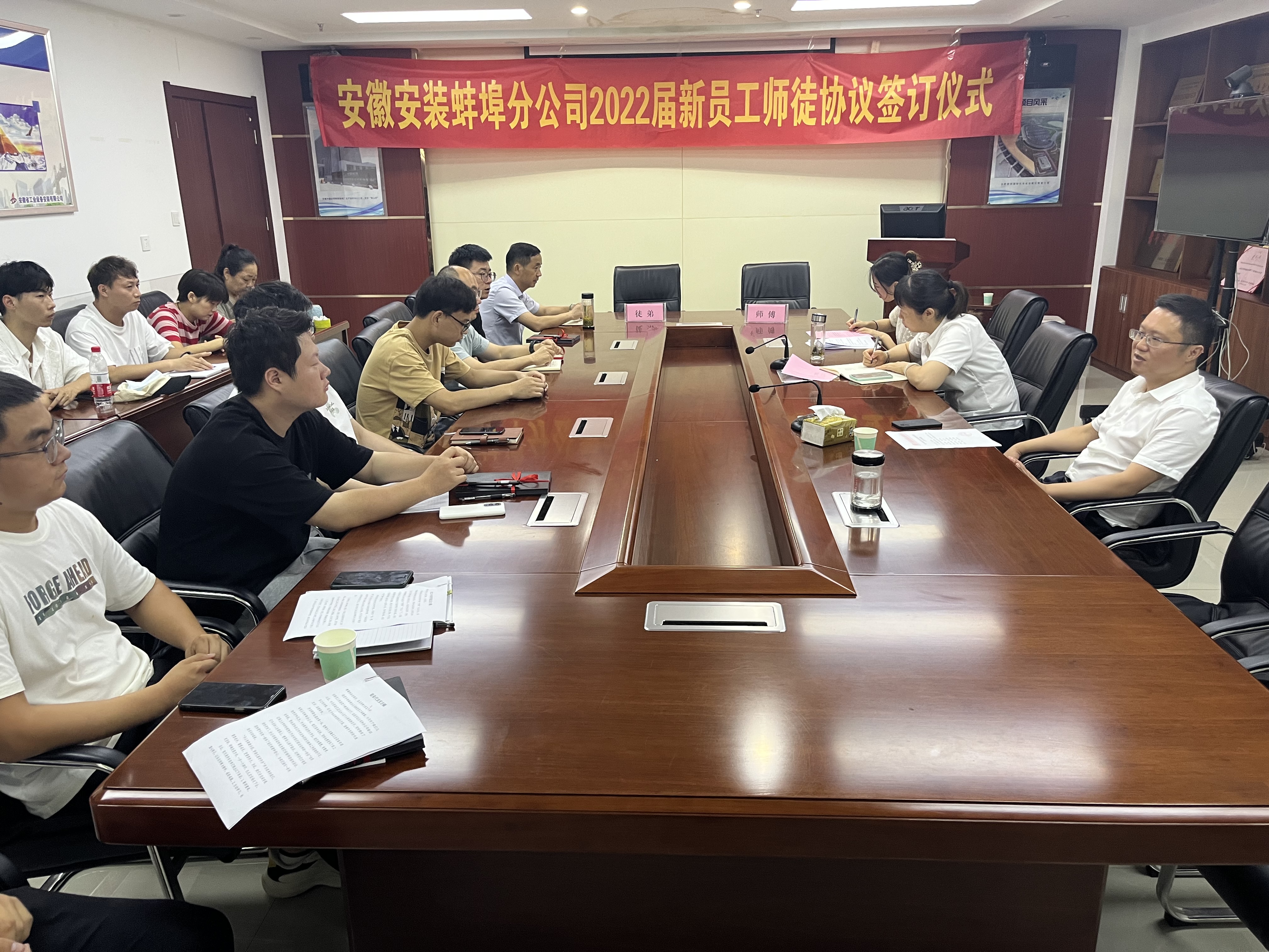 為使新員工盡快成長(cháng)成才,加速人才培養,加強分公司人才梯隊建設。7月15日下午,蚌埠分公司黨支部舉行了“2022屆新員工師徒結對”簽訂儀式。分公司黨政主要領(lǐng)導、部門(mén)負責人、項目經(jīng)理、對結對師徒參加了此次會(huì )議。