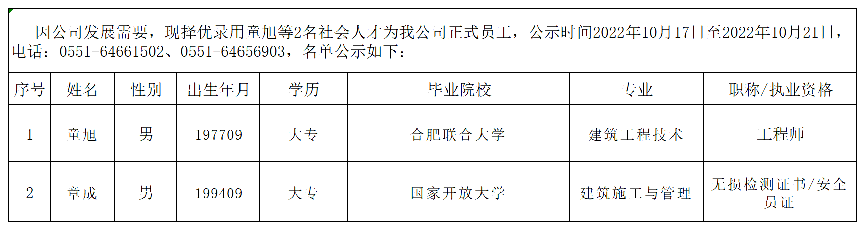 2022年擬錄用社會(huì )人才公示(2)