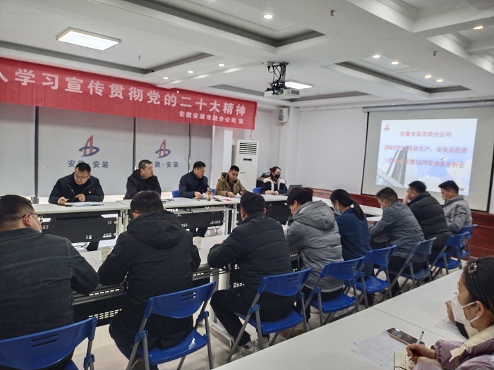 12月13日上午,市政分公司在十五樓職工之家召開(kāi)分公司12月份生產(chǎn)、安全、經(jīng)營(yíng)工作暨成本分析會(huì )。分公司領(lǐng)導班子成員、機關(guān)部門(mén)及項目部全體員工參會(huì ),會(huì )議由分公司生產(chǎn)副經(jīng)理張漢軍主持。