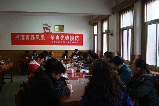 最后,戴書(shū)記聯(lián)系實(shí)際,就公司年輕大學(xué)生隊伍如何快速發(fā)展和發(fā)揮先鋒模范作用提出三點(diǎn)意見(jiàn):一是年輕同志要著(zhù)重從學(xué)習提高,實(shí)踐磨煉,作風(fēng)養成三個(gè)方面把握自身成長(cháng)規律,不斷提升自己。二是結合科學(xué)發(fā)展觀(guān),堅持以人為本,尤其是對有沖勁、有干勁的在職大學(xué)生多關(guān)懷,積極構筑公司“人本管理”模式,把建設一支高素質(zhì)人才隊伍、黨員隊伍貫穿創(chuàng )先爭優(yōu)活動(dòng)的始終。三是對在職大學(xué)生如何健康成長(cháng)、快樂(lè )成才提出殷切希望:一要保持積極的心態(tài),要善于穩定情緒,合理的進(jìn)行自我減壓,主動(dòng)與人有效溝通;二要保持務(wù)實(shí)的工作作風(fēng),踏實(shí)努力,加強執行力的鍛煉;三要保持良好的形象,由內而外的提升自己的素養。在新的一年里,希望大學(xué)生黨員在各自的崗位上率先垂范,彰顯風(fēng)采,把“揮灑青春風(fēng)采,爭當先鋒模范”精神延伸到項目文化、企業(yè)文化和機關(guān)效能建設中去,為公司三個(gè)文明建設的進(jìn)一步加強和未來(lái)三年大發(fā)展夯實(shí)思想、隊伍、管理基礎,為公司的“十二五”發(fā)展貢獻力量。