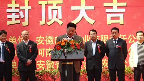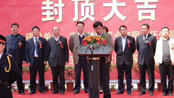 皖投置業(yè)總經(jīng)理耿文女士在慶典上發(fā)表講話(huà),對我公司全體人員的工作給予了充分的肯定,并表示皖投水岸星城一期三標段工程的順利封頂,奠定了皖投置業(yè)與省安裝公司成為長(cháng)期戰略合作伙伴的基礎。