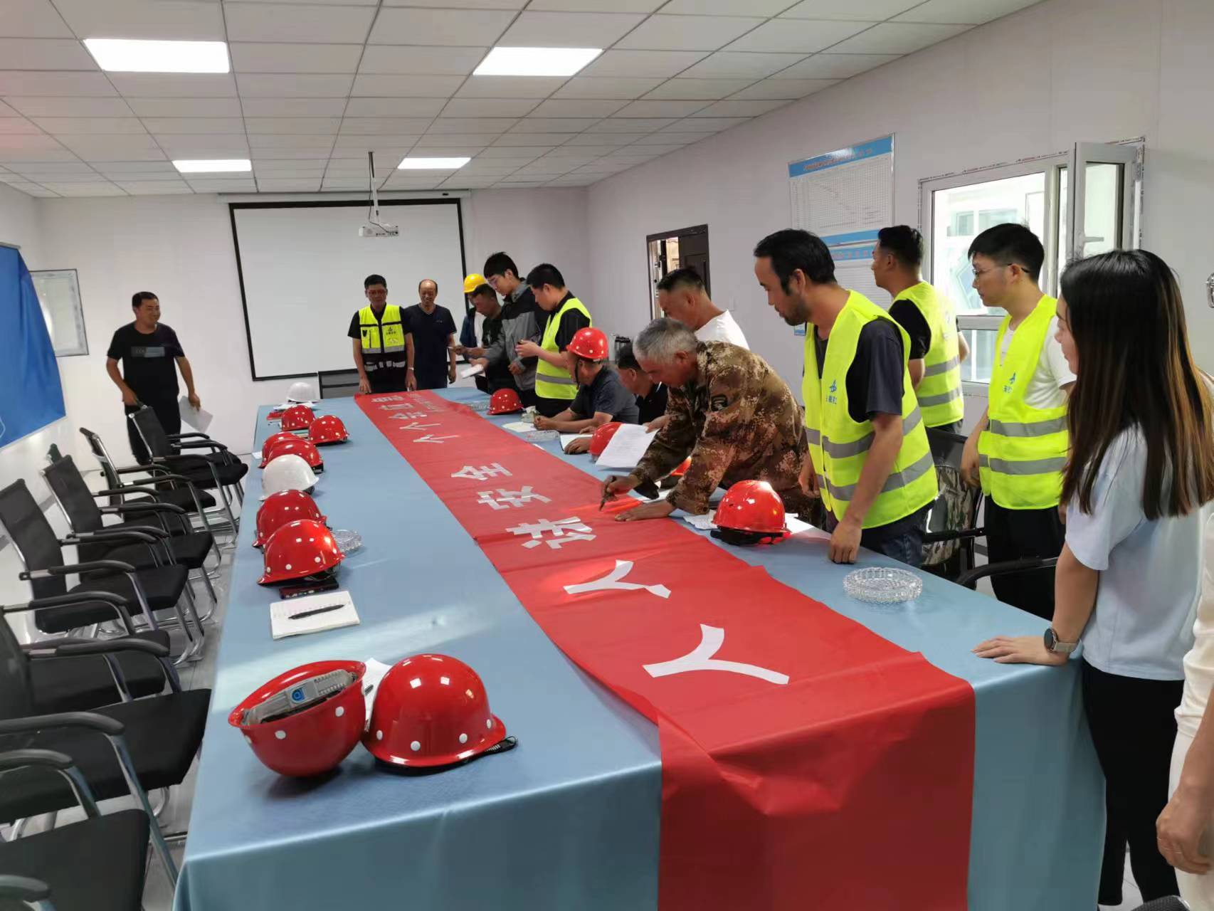 啟動(dòng)儀式上,項目部安全員向大家宣讀此次安全月活動(dòng)的活動(dòng)方案,播放安全教育、警示類(lèi)視頻,并著(zhù)重講解施工現場(chǎng)及生活區一些常見(jiàn)而易忽視的安全隱患及防范措施,提升管理人員在面對風(fēng)險時(shí)的安全意識,并指出確保安全是各類(lèi)生產(chǎn)活動(dòng)的首要任務(wù),全員要樹(shù)立安全第一、生命至上的理念。分公司所屬項目部管理人員要嚴格落實(shí)安全生產(chǎn)責任制,樹(shù)牢安全紅線(xiàn)意識,通過(guò)宣傳教育、實(shí)戰演練、隱患排查等方式,讓分公司全體員工和所屬項目所有參建人員更積極主動(dòng)參與到各項安全生產(chǎn)活動(dòng)中來(lái),清楚各自在安全體系管理中的責任及意義,努力營(yíng)造一個(gè)“人人要安全、人人管安全”的良好安全管理氛圍,提升分公司安全管理水平。在儀式的最后,所有人員在安全員的帶領(lǐng)下莊嚴宣誓,并在印有“人人講安全,個(gè)個(gè)會(huì )應急”的橫幅上進(jìn)行安全承諾簽名。