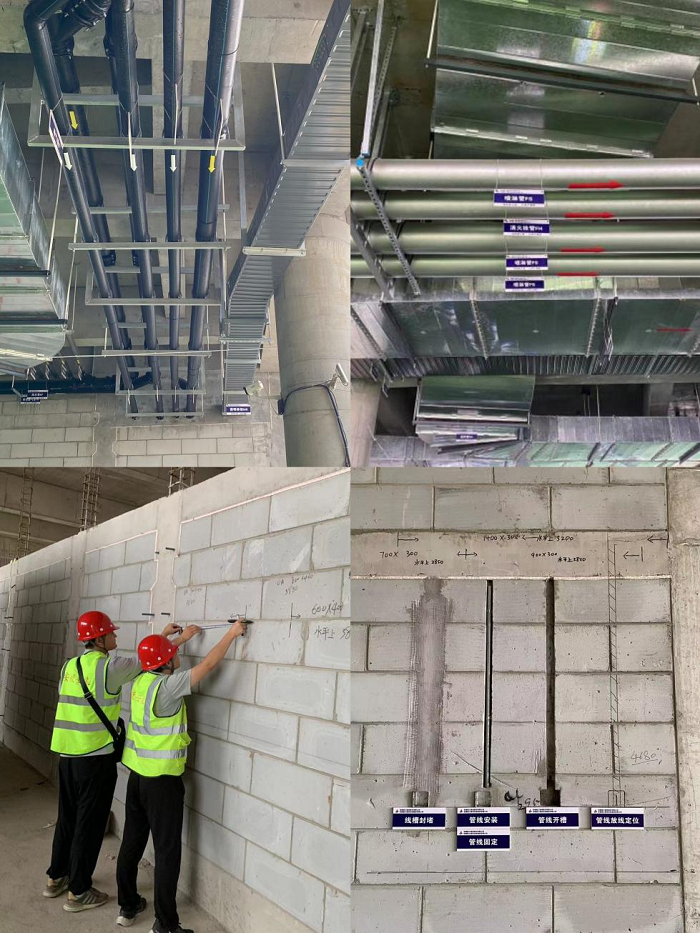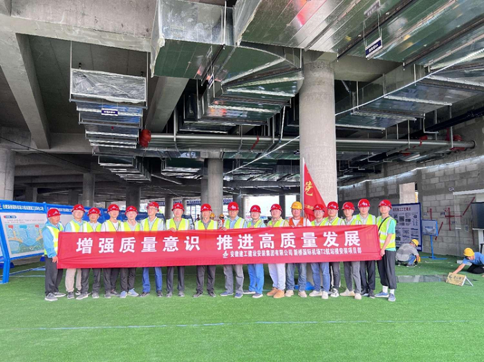 建工安裝新橋國際機場(chǎng)T2航站樓機電安裝項目,位于合肥市新橋國際機場(chǎng)場(chǎng)區內,公司承接的施工范圍包括航站樓南北指廊給排水系統、采暖、通風(fēng)空調系統、消防及電氣系統安裝等,合同總造價(jià)2.747億元,合同工期總日歷天數941天,計劃于2025年10月15日竣工。本工程為省一號重點(diǎn)工程,工程體量大,建筑空間大,施工內容多、難度大、工期緊,質(zhì)量要求高。自開(kāi)工建設以來(lái),項目部結合實(shí)際,通過(guò)設立“黨員示范崗”和成立黨員技術(shù)攻關(guān)小組,助推項目建設“加速度”。項目黨員同志帶頭研究新工藝、創(chuàng )新使用新方法,大力開(kāi)展技術(shù)攻關(guān),通過(guò)不斷摸索實(shí)驗,逐步形成了以BIM+“樣板引路”的智慧施工管理模式,在充分發(fā)揮黨員先鋒模范作用的同時(shí),進(jìn)一步提高生產(chǎn)效率和工程質(zhì)量,促進(jìn)黨建和生產(chǎn)經(jīng)營(yíng)有效融合。