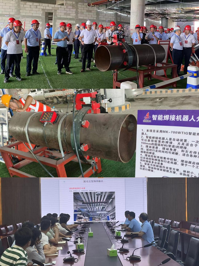 在技術(shù)攻關(guān)小組成員的帶領(lǐng)下,項目部積極響應國家“雙碳”目標和智能建造要求,創(chuàng )新運用智能焊接機器人代替人工焊接,確?!皹影逡贰狈€定高效實(shí)施。技術(shù)攻關(guān)小組成員經(jīng)過(guò)數次考察試驗,結合實(shí)際引入了MK-700WTIG管道焊接小車(chē),它體積小,重量輕,安裝、拆卸和移動(dòng)方便,兼具標準角焊機簡(jiǎn)易輕便的特點(diǎn),避免了人為因素所造成的焊縫和質(zhì)量不高現象,可以大幅度提高焊接效率,減少材料損耗和施工返工率,進(jìn)一步提高生產(chǎn)效率。技術(shù)攻關(guān)小組先后編制了智能焊接機器人操作指南和工藝視頻,有效幫助指導現場(chǎng)項目人員更好地掌握運用智能焊接機器人技術(shù)。通過(guò)“BIM+智能焊接機器人”方式,項目部形成了高質(zhì)量、高標準和穩定的現場(chǎng)施工模式以及數字化、智能化的智慧管理模式,大力推動(dòng)項目智能建造體系的構建,助推項目降本增效。