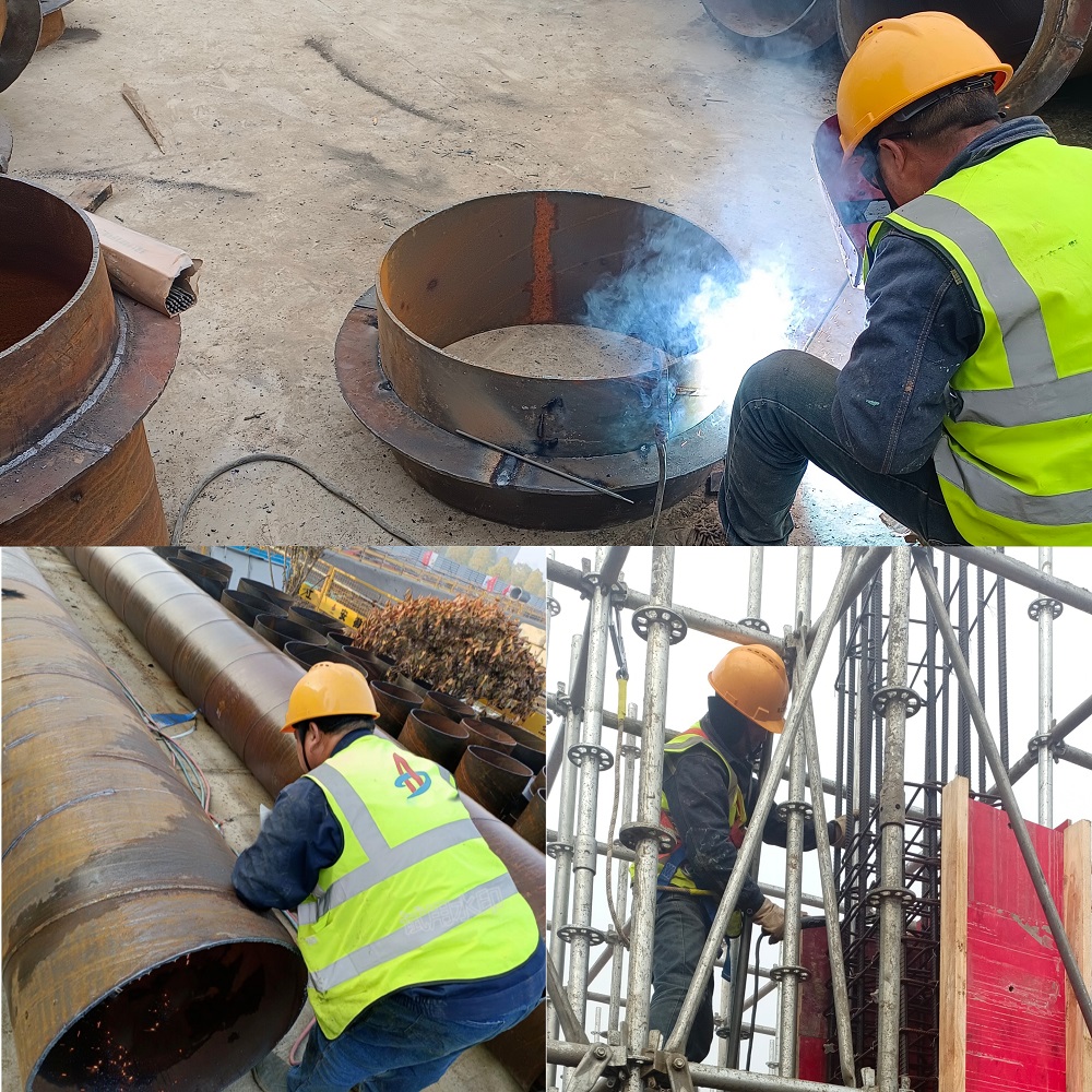 圖為:合肥七水廠(chǎng)三期項目防水套管加工焊接制作和預埋活性碳濾池管廊電氣配管安裝施工
