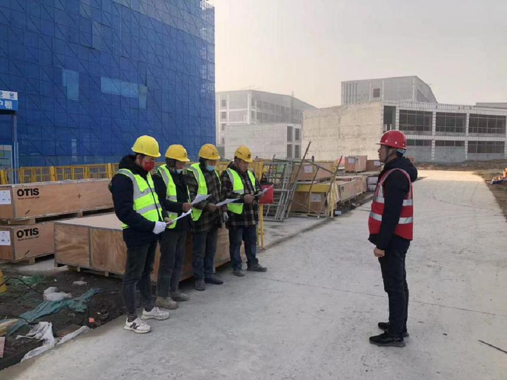 渦陽(yáng)職教園電梯安裝工程現場(chǎng),項目部對施工班組人員開(kāi)展三級安全教育、技術(shù)交底,強化安全防范意識,確保項目施工生產(chǎn)安全。