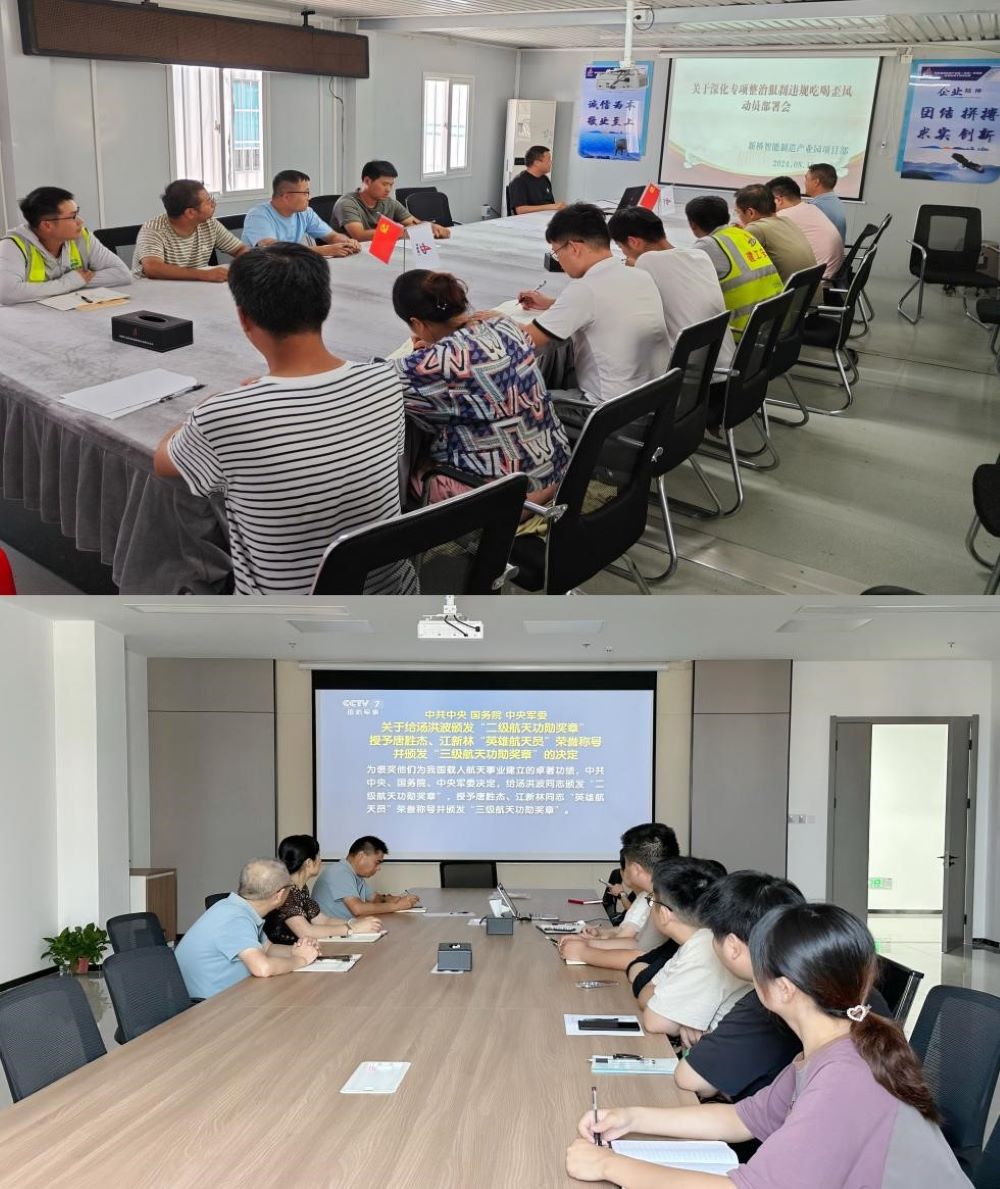 學(xué)習中,分公司機關(guān)和各項目部分別集中觀(guān)看了中共中央、國務(wù)院、中央軍委《關(guān)于給湯洪波頒發(fā)“二級航天功勛獎?wù)隆?nbsp;授予唐勝杰、江新林“英雄航天員”榮譽(yù)稱(chēng)號并頒發(fā)“三級航天功勛獎?wù)隆钡臎Q定》網(wǎng)絡(luò )視頻。