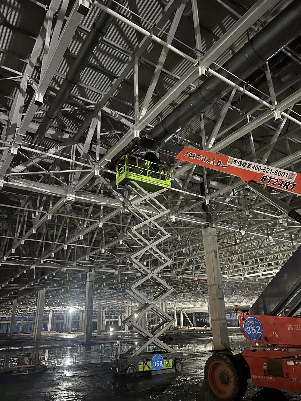 目前正在進(jìn)行車(chē)間一1-6區通風(fēng)管、照明管、橋架、虹吸雨水管、衛生間排水管、防雷接地、消防管等安裝作業(yè),材料加工區預制各類(lèi)管道支架也在同步推進(jìn)?,F已完成車(chē)間一風(fēng)管安裝約3000平方米,風(fēng)管預制約8000平方米,虹吸雨水管道安裝約120米,照明配管安裝約2000米,消防管道安裝約320米,防雷接地網(wǎng)安裝約10000米,橋架安裝約400米。