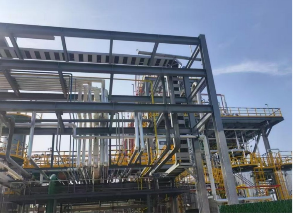 NVP裝置是敞開(kāi)式鋼框架NVP裝置,為4層工業(yè)構筑物,占地面積1845.25平方米,建筑高度17米,已于2024年10月5日完成竣工驗收工作。