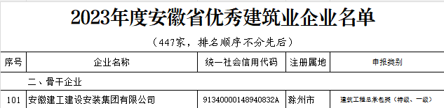 【喜報】建工安裝入選“2023年度安徽省優(yōu)秀建筑業(yè)企業(yè)”